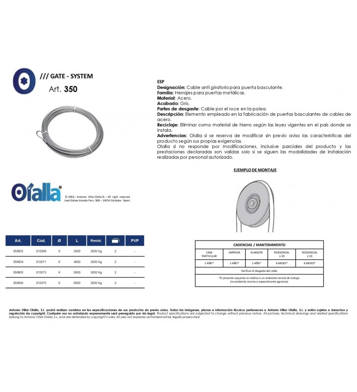Advertencias: Olalla sl se reserva de modificar sin previo aviso las características del producto según sus propias exigencias.