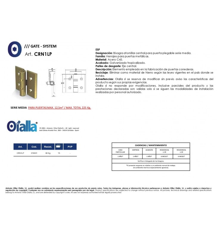 LINEA MINIGIPI - Bisagra central en acero con 2 alas, pernio ø 12