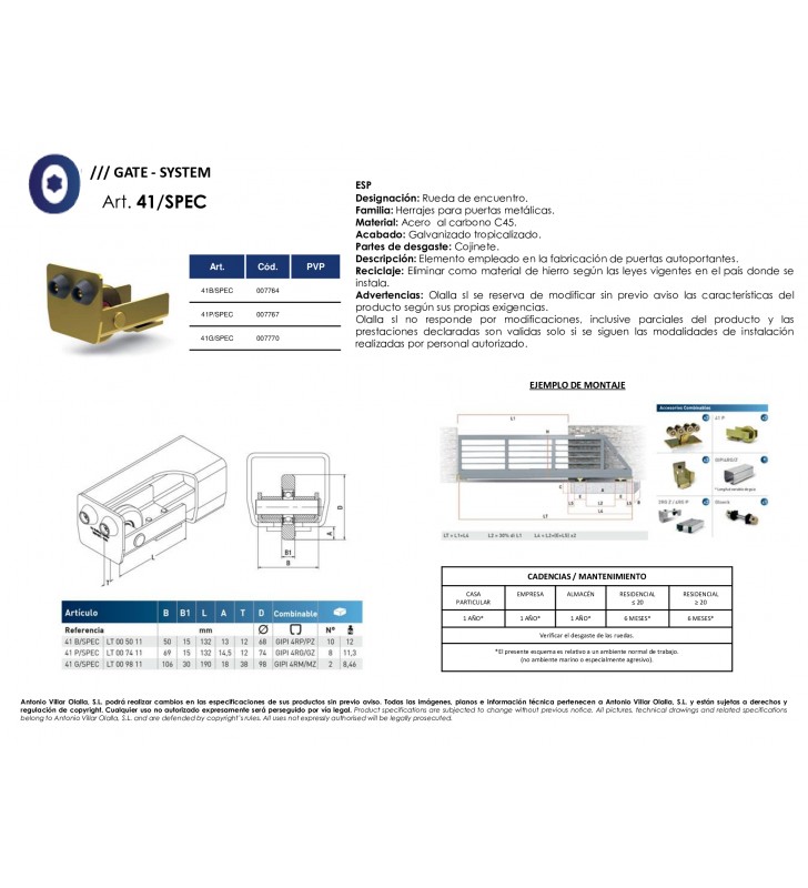 El CA4RPS esta diseñado para puertas que contenga un hueco libre entre 3 a 6 metros y un peso máximo de 450 Kg.