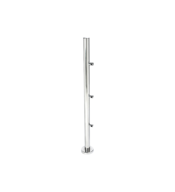 POSTE DE ACERO INOXIDABLE CON SOPORTE ARTICULADO Y 3 SOPORTES PARA VARILLA DE 12MM / BRILLO